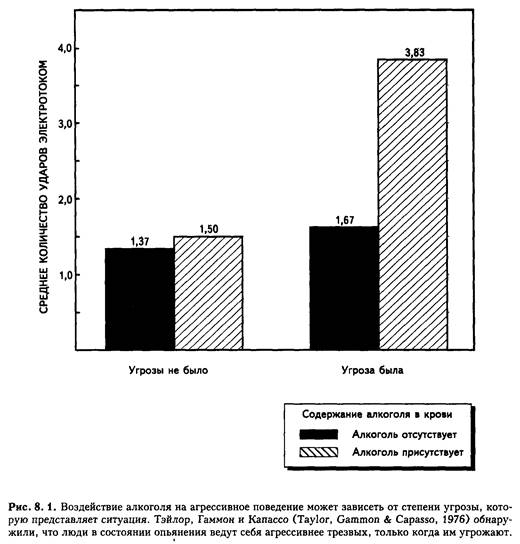 Подобные результаты были получены в ходе последующих экспериментов, проводившихся с участием женщин (Baron, 1976b). Таким образом, можно сказать, что нелинейная связь между уровнем сексуального возбуждения и уровнем агрессии характерна для обоих полов. Как и прогнозирует гипотеза несовместимых реакций, умеренные сексуальные стимулы вызывают положительные чувства, ведущие к снижению уровня агрессии в дальнейшем поведении. Напротив, откровенные сексуальные стимулы генерируют высокие уровни возбуждения, которые могут вызвать фрустрацию, а также смешение положительных и отрицательных реакций. Таким образом, эти стимулы не только не уменьшают агрессию, а могут даже усилить ее.