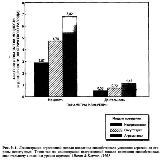 Чтобы проверить опытным путем это заключение, Бэрон и Белл (Baron & Bell, 1977) провели эксперимент, на первой стадии которого мужчин-испытуемых провоцировал помощник экспериментатора. Затем различным группам испытуемых, прежде чем им была предоставлена возможность ответить на действия этого человека, предъявлялись резко отличающиеся типы эротических стимулов. Одна группа смотрела нейтральные (не возбуждающие) фотографии — изображения пейзажей и интерьеров. Вторая — фотографии очаровательных девушек в купальных костюмах и неглиже. Третья — фотографии обнаженных красавиц. В еще двух группах либо смотрели фотографии, на которых были изображены половые акты между мужчинами и женщинами, либо читали рассказы с откровенно сексуальной тематикой. Результаты подтвердили вышеизложенную гипотезу: умеренное сексуальное возбуждение (вызванное фотографиями полуобнаженных и обнаженных девушек) уменьшало агрессию. Напротив, сильное возбуждение (то есть возникшее в результате откровенно сексуальных пассажей) не стало средством, способным уменьшить агрессию, оно, напротив, даже повысило вероятность демонстрации подобного поведения.