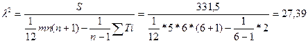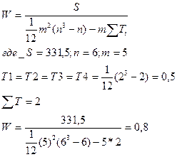 При расчете коэффициента конкордации получаем значение 0,8, что говорит о наличии высокой степени согласованности мнений экспертов.