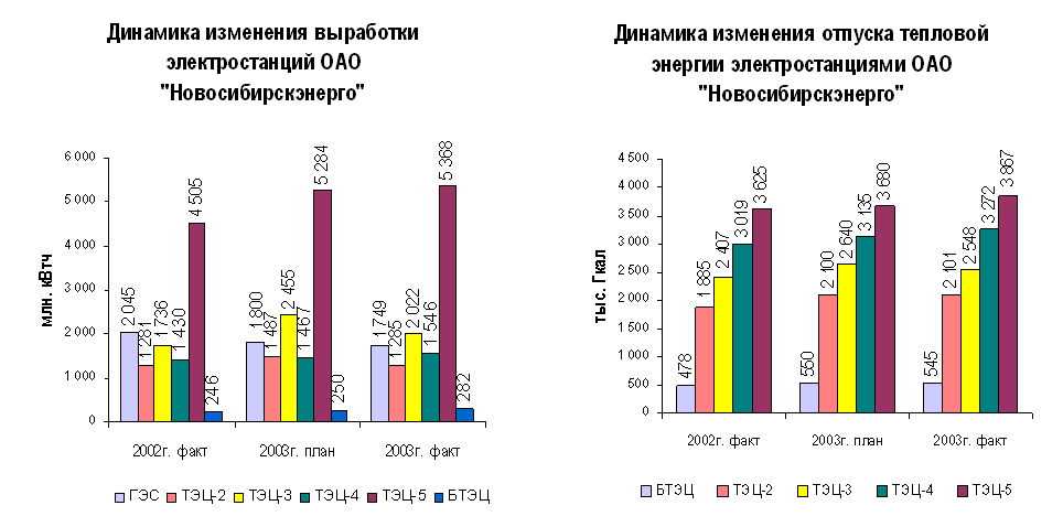 В состав генерирующих мощностей ОАО «Новосибирскэнерго» входят пять тепловых электрических станций и Новосибирская ГЭС на базе имущества РАО «ЕЭС России» общей мощностью 2 625 Мвт. Большая часть электроэнергии и тепла производится на тепловых станциях, работающих на угле. Основные поставщики угля - Канско-Ачинский и Кузнецкий бассейны. Основные виды продукции энергосистемы - электроэнергия (60%) и теплоэнергия (39%).