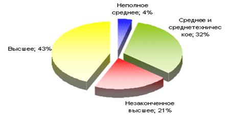 4. Неадаптированность профессионального образования к потребностям экономики. Сокращение начального профессионального образования перекрывается ростом высшего образования. Значительные диспропорции связаны с растущими масштабами подготовки специалистов экономики и управления, выпуск которых за 90-е годы увеличился с 31 до 71 %.