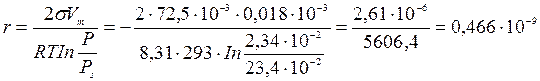 Для воды находим: σ = 72,5·10-3 Дж/м2; Рs = 23,4 ·10-2 Па.