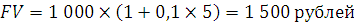 Ответ: Величина вклада через 5 лет составит 1 500 рублей.