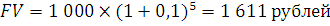 Ответ: Величина вклада через 5 лет составит 1 611 рублей.