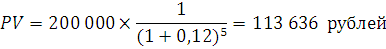Задача 2. Какую сумму надо поместить в банк для того чтобы через 5 лет накопить 200 000 рублей? Процентная ставка банка 12 %.