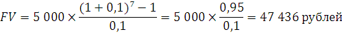 Задача 3. 5 000 рублей в конце каждого года помещалось на банковский счет с начислением 10 % годовых в течение 7 лет. Какая сумма накопится на счете в конце седьмого года?