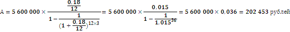 течение 3 лет ежемесячными платежами. Рассчитать величину ежемесячных платежей,