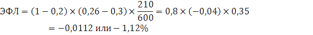 Ответ: Уровень эффекта финансового левериджа показывает изменение рентабельности собственного капитала. В результате получения отрицательной величины (-1,12 %) можно говорить об уменьшении рентабельности собственного капитала.