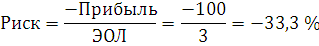 При сокращении выручки на 25 %, Прибыль=Vпр * ЭОЛ = -25 % * 3 = -75 %. Следовательно, предприятию удается сохранить 100-75=25 % прибыли.