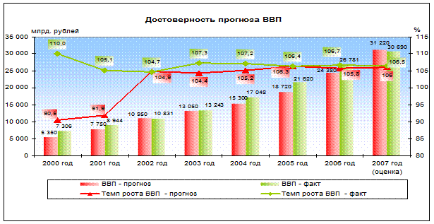Таким образом, анализ показывает, что в 2005 году продолжалась сложившаяся в последнее время негативная тенденция низкого уровня прогнозирования важнейших показателей формирующих бюджетную систему. В результате процент исполнения федерального бюджета проходил в сложных условиях и, в значительной мере, отличался от показателей установленных законом о федеральном бюджете на 2005 год.