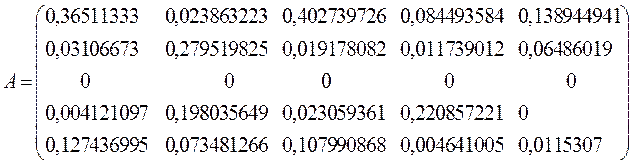т.е. вся произведенная i-й отраслью продукция хi (валовая продукция в денежном выражении) делится на промежуточную и конечную. Промежуточная продукция - это та часть валовой продукции i-й отрасли, которая расходуется другими отраслями в процессе осуществления ими собственных производственных функций.