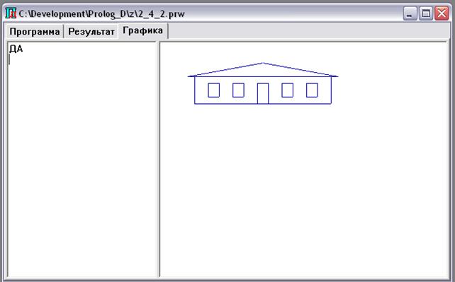 Еще одним примером выполнения программы может служить построение одноэтажного дома. Для этого к созданной базе знаний надо задать вопрос дом(7);