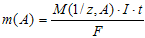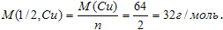 где т(А) — масса вещества А, окисленного или восстановленного на электроде (г); М(1/z,А) — молярная масса эквивалента вещества А (г/моль); I — сила тока (А); t — продолжительность электролиза (с); F – число Фарадея, (F ≈ 96500 Кл/моль). Молярная масса эквивалента меди в СuSO4 равна: