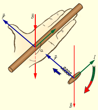 с током, затем его рукоятка поворачивается от направления тока к направлению