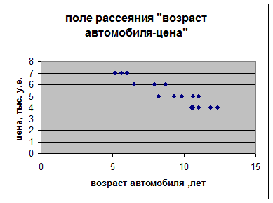 Рисунок 1 – Поле рассеяния «возраст автомобиля-цена»