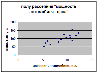 Рисунок 2 – Поле рассеяния «мощность автомобиля-цена»