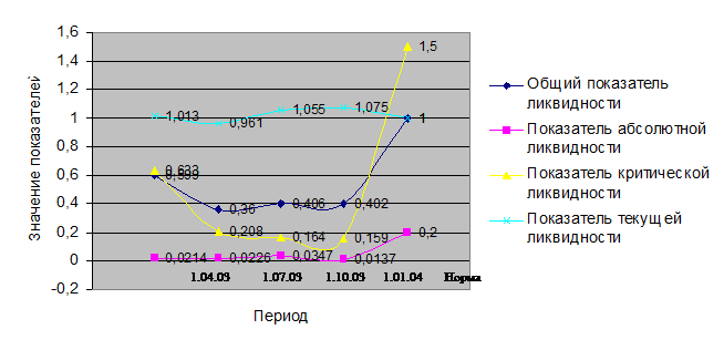Оценка ликвидности баланса означает изучение способности предприятия быстро гасить свою задолженность по общей сумме и по срокам наступления платежей на протяжении 2004 года при исследованнии по кварталам.