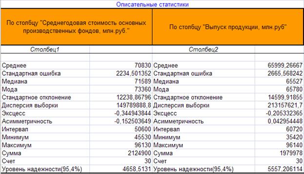 На основании рассчитанных значений показателей описательной статистики можно не только получить информацию о средних величинах, степени вариации и особенностях формы распределения единиц совокупности, но и сделать выводы о других статистических характеристиках и свойствах совокупности, о внутренней связи между единицами совокупности.