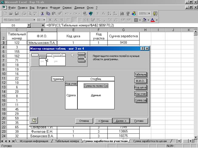 Необходимо выполнить расчет начисления заработной платы по цехам и участкам. Расчет выполняется путем накопления сумм, касающихся отдельного сотрудника.