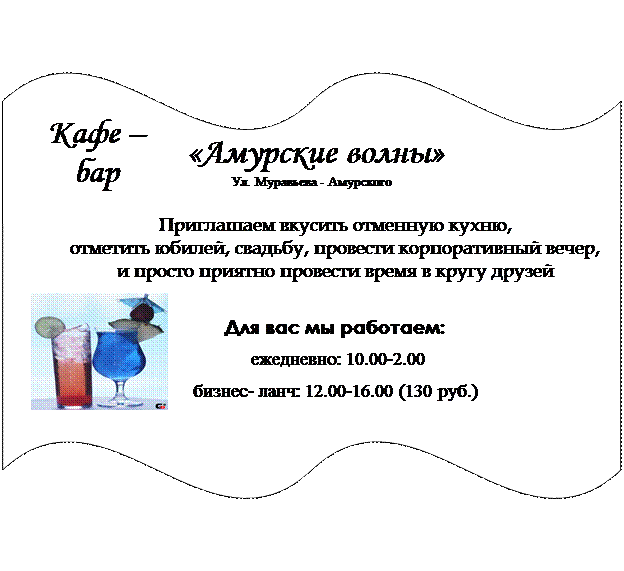 Организационно-правовая форма кафе-бара «Амурские волны» - общество с ограниченной ответственностью.