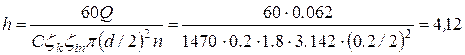 Выразим из этой формулы искомую величину (высоту) и подставим исходные данные задачи, учитывая, что 62 л/с равен 0,062 м3/с: