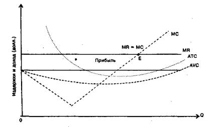 Следовательно, при определении фактической прибыли! или убытка должны быть сопоставлены цена (Р) и средние валовые издержки (АТС). Конкурентная фирма будет максимизировать прибыли или минимизировать убытки в краткосрочном периоде, производя такой объем продукции, при котором цена превышает минимальное значение средних издержек Р > min АТС. И наоборот, фирма терпит убытки, если цена меньше средних валовых издержек Р < АТС. Нередко такая фирма разоряется и исчезает с поля хозяйственной деятельности.