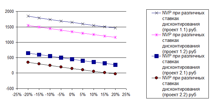 Какой же проект должен быть принят? Вспомним, что состояние акционеров повышается на величину NPV проекта, по этому очевидно, что предпочтение следует отдать проекту 1.1