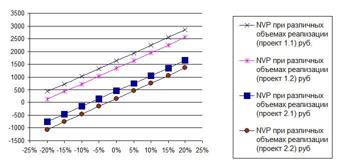 Анализ полученных результатов показал, что по всем параметрам, характеризующим инвестиционный проект 1.1 превосходит иные варианты и ему следует отдать предпочтение. Оценка чувствительности также показала, что проект 1.1 наиболее устойчивый по отношению к внешним изменениям.