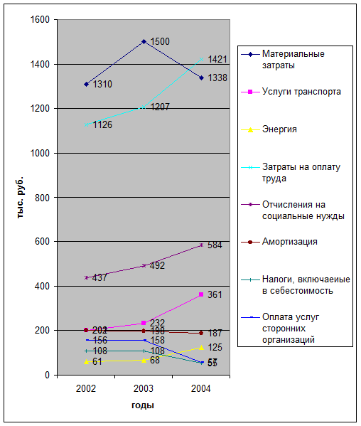 Рис. 15. Динамика основных элементов затрат ООО «Гостиница «Центральная» в 2002-2004 годах