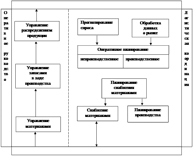 В рамках координационных функций логистики выделилось еще одно из ее направлений – оперативное планирование, продиктованное стремлением сократить запасы, не снижая эффективности производственной и сбытовой деятельности фирм. Суть его состоит в том, что на основании прогноза спроса, корректируемого позднее при поступлении реальных заказов, разрабатываются графики перевозок и в целом порядок управления запасами готовой продукции, которые в итоге и определяют планирование производства, разработку программ снабжения его сырьем и комплектующими изделиями.[3]
