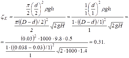 Максимальное сопротивление крана будем находить из условия равенства расхода воды через трубу диаметром d=30 мм и через трубу диаметром D=37 мм, причем сопротивление при истечении воды через трубу d=30 мм не учитываем.