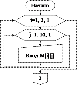 Блоки 1 и 3 обычно задают диапазон изменения аргументов. Блок 1 присваивает всем аргументам начальные значения, обеспечивая тем самым выполнение рабочих операций на первом цикле.