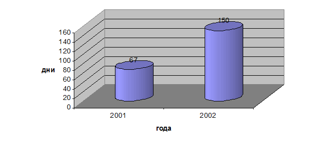 Таким образом, в 2002 г. в среднем через каждые 348 дня предприятие получает оплату от дебиторов и через каждые 150 дня обязано платить кредиторам.