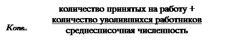 Однако, при этом необходимо изучить изменение структуры персонала [7, C. 89]. По мнению авторов, в связи с этим наиболее ответственный этап в анализе обеспеченности предприятия рабочей силой – изучение ее движения [12, C. 137]. Для характеристики движения рабочей силы в литературе предлагается рассчитывать и анализировать динамику следующих коэффициентов [15, C. 22]: