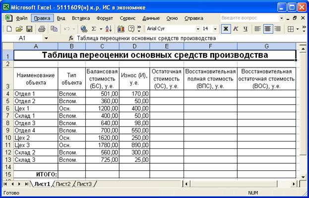 2.2. Создание таблицы и заполнение ее исходными данными............................. 12