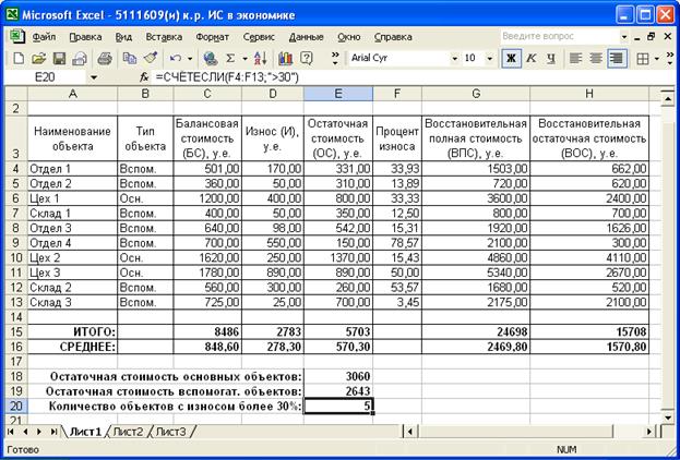 1000 у. е. и остаточной стоимостью менее 350 у. е.................................. 20