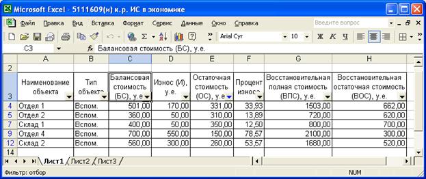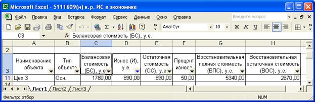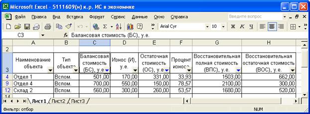 2.4.1. Отбор объектов с остаточной стоимостью оборудования