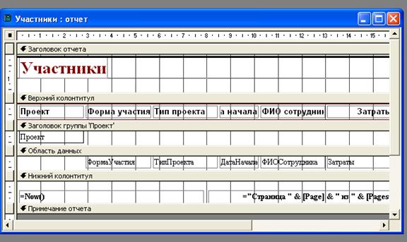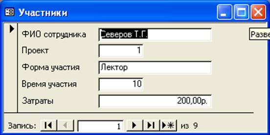 В запрос добавим поля Проект, Тип проекта, Дата начала из таблицы Проекты, поля ФИО сотрудника, Форма участия, Затраты, руб из таблицы Участники.