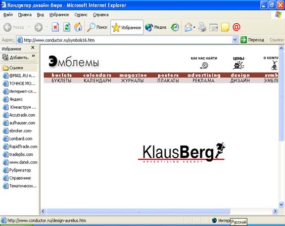 Открыв одну из ссылок, попадем на начальную страницу рекламного агентства Клаус Берг: