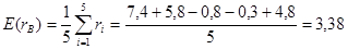 1) Средняя доходность по индексу за 5 месяцев равна
