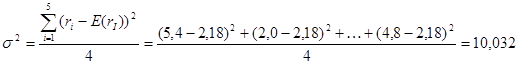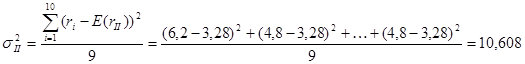 Подставив в последнюю формулу известные значения доходностей акций за каждый квартал, получим таблицу