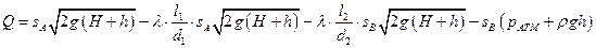 Искомый расход с учетом потерь в соединительных трубах находится по формуле