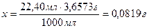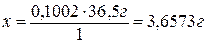 Количество HCl, оставшейся в избытке и оттитрованной 22,40 мл 0,1002 н. NaOH будет равно 22,40 мл 0,1002 н. HCl. Рассчитываем массу этой кислоты.