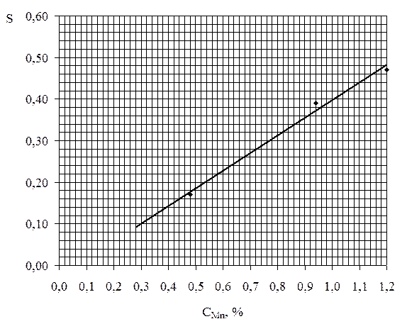 По калибровочному графику определяем, что DSх = 0,30 соответствует концентрация марганца 0,77 %.