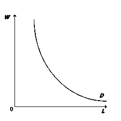 При росте заработной платы при прочих равных условиях, предприниматель в целях сохранения равновесия должен соответственно сократить спрос на труд, а при снижении заработной платы спрос на труд возрастает. Кривая спроса на труд D отражает убывающую предельную доходность труда.