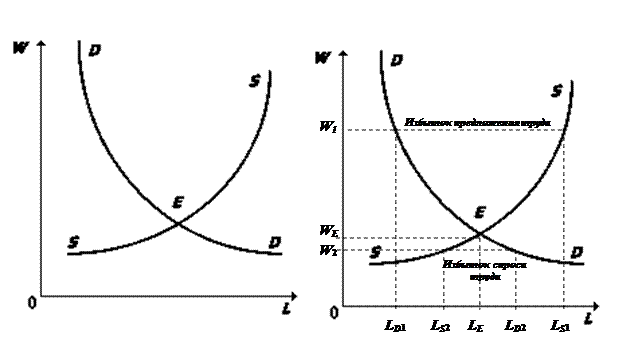 Рис. 5. Рыночное равновесие Рис. 6. Рынок труда