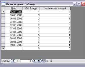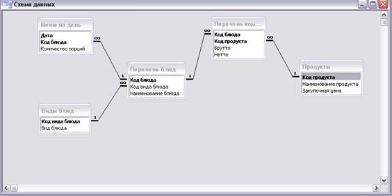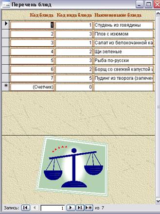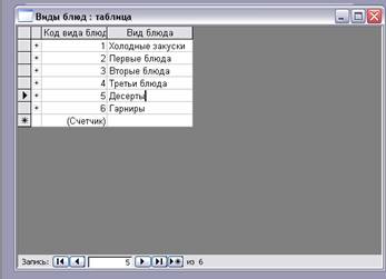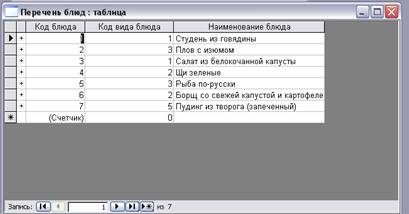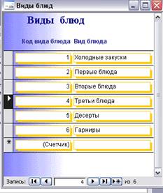 · «Виды блюд» - предназначена для хранения данных о видах пищи (см. рисунок 1).