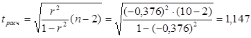 Расчетное значение t-критерия определяем по формуле: