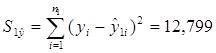 Остаточная сумма квадратов рассчитывается по формуле (использована функция СУММКВ Мастера функций Excel):
