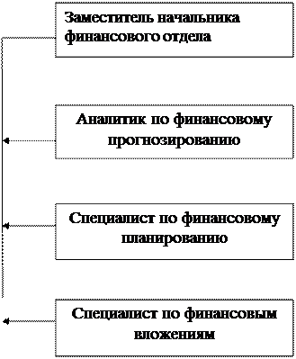 Исходя из основных задач, поставленных перед финансовой службой, строится организационная структура финансового отдела, представленная на рис. 1 и составляется штатное расписание финансового отдела, сведенного в таблице 3.